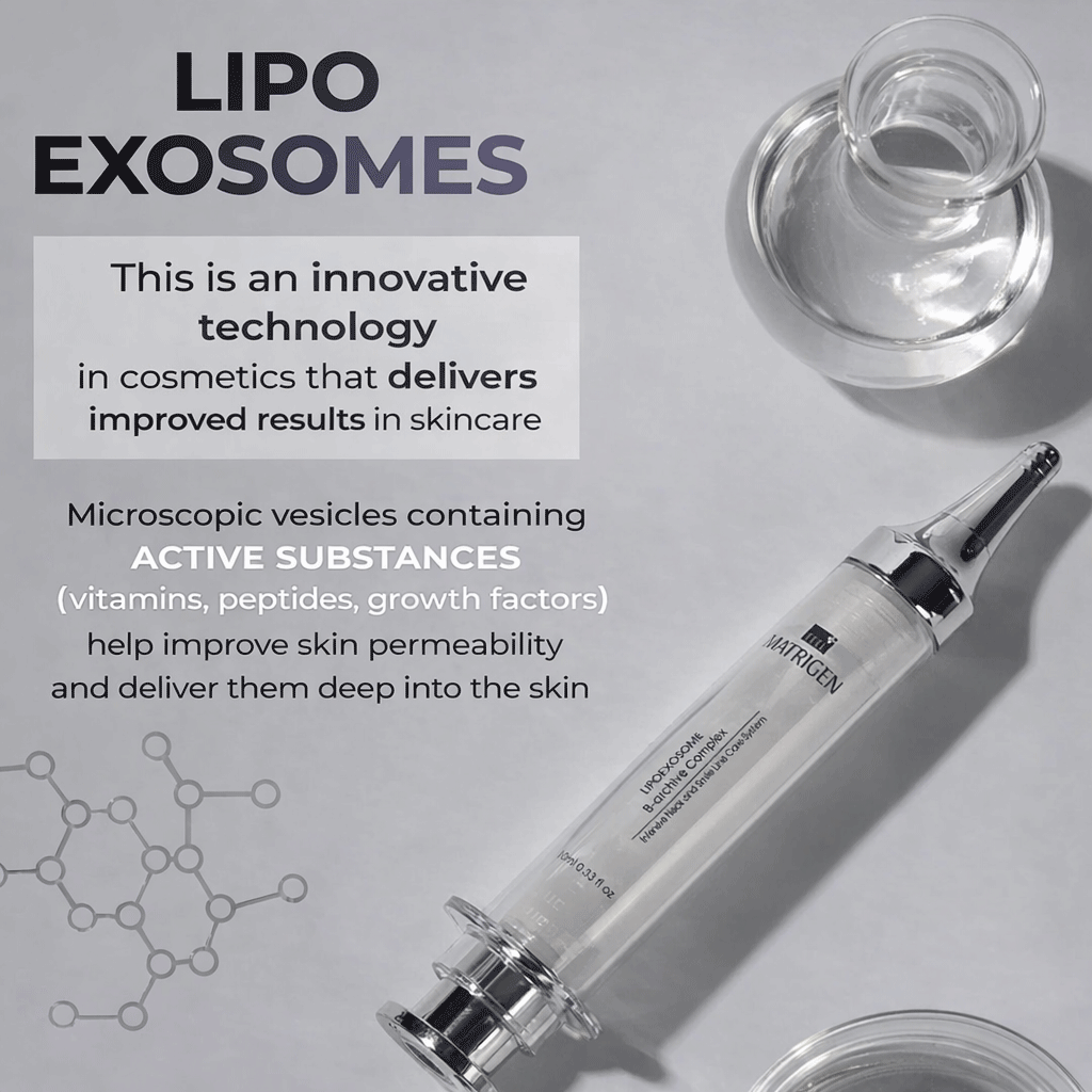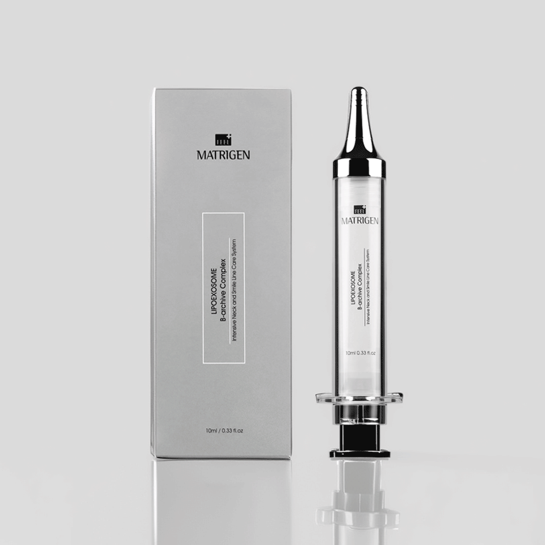 Matrigen LipoExosome B-Archive Complex professional firming and anti-wrinkle solution formulated with bioactive exosomes, peptides, and botanical extracts to support skin elasticity, smooth rough texture, reduce visible wrinkles, and restore a nourished, youthful skin appearance.