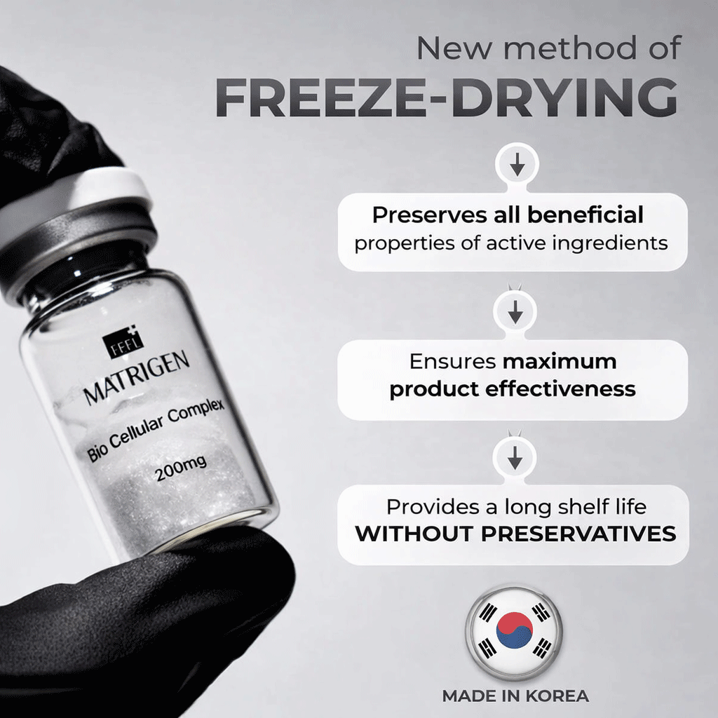 This dual-phase system combines a Bio Cellular Complex with a Lipo Cellular Solution that activates upon mixing. Bioactive exosomes, peptides, collagen, and botanical extracts work synergistically to support skin regeneration, improve elasticity, refine texture, and deliver essential nutrients for a healthier, firmer skin appearance.