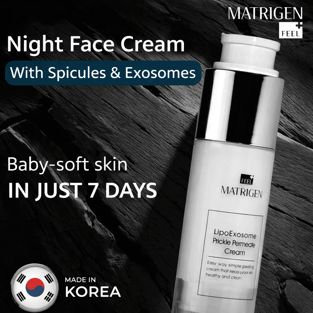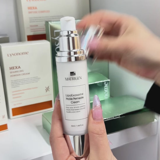 Matrigen LipoExosome Prickle Permeate Cream professional liquid microneedling cream formulated with spicules, exosomes, PDRN, and barrier-repair actives to enhance absorption, improve elasticity, support skin regeneration, smooth texture, and strengthen the skin barrier.